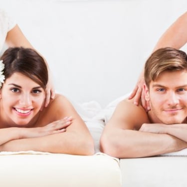 A shared massage experience where two guests receive treatments side-by-side in a private room.